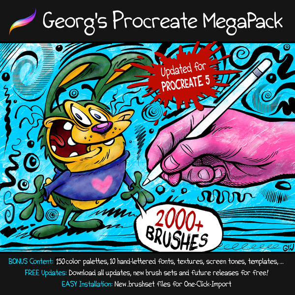 This kind of system is a great way to try out their products before you buy them. Optimized for Procreate and Apple pencil. I just published awesome new Procreate 5X GeorgBrushes as lovely Christmas gifts for you.